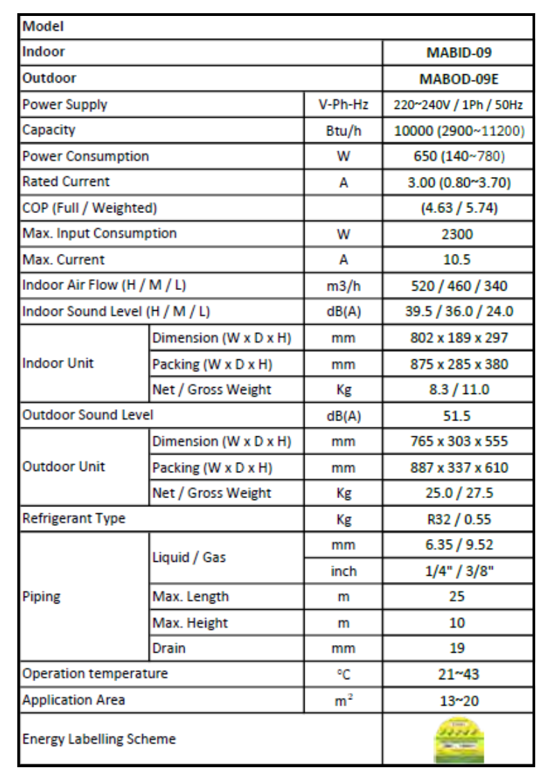 Midea Single Split MABID-09/MSEOD-09E - 5 TICKS